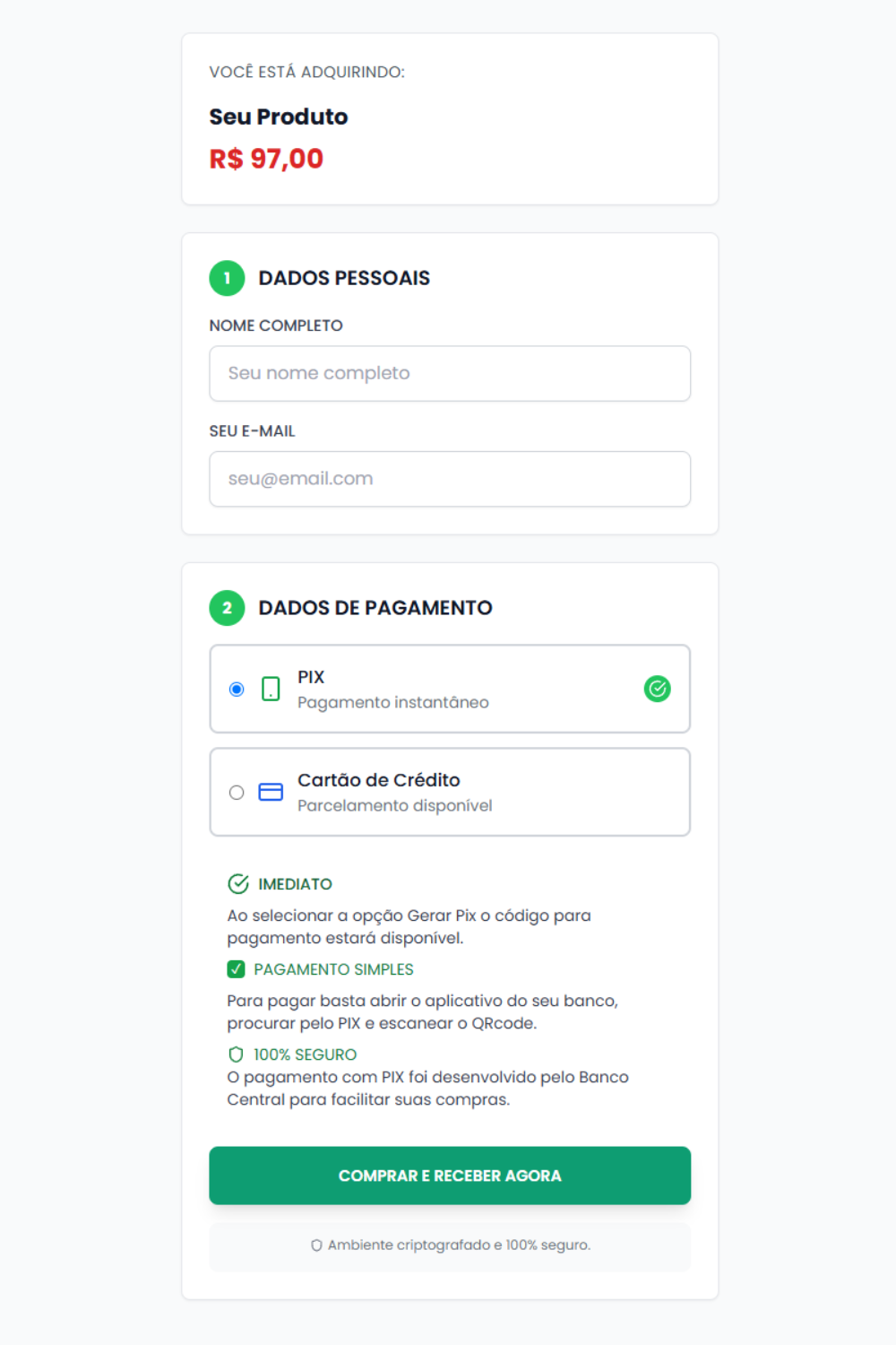 Você paga apenas a assinatura mensal da Payermex. Não cobramos nenhuma taxa por venda realizada. Você paga apenas as taxas mínimas do adquirente que escolher (MercadoPago, SuitPay, etc.), que são muito menores que as das plataformas tradicionais.